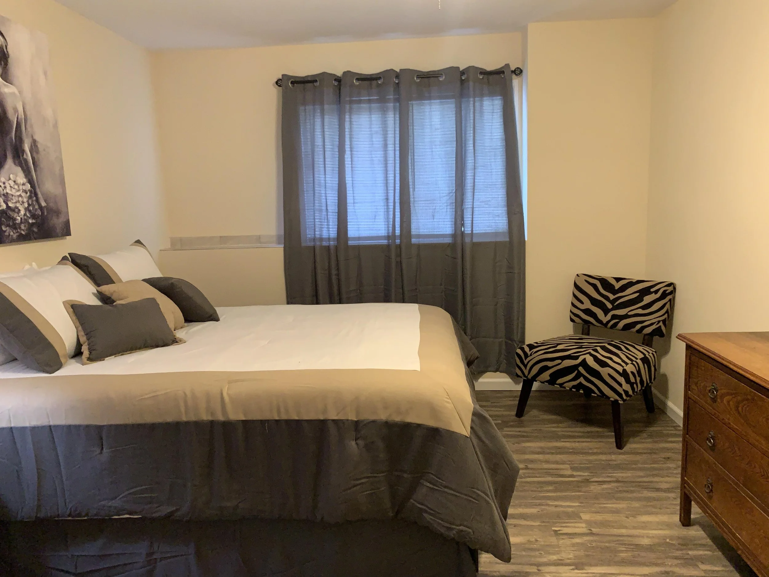 The second bedroom offers a comfortable and serene atmosphere with large windows that allow natural light to fill the room. It’s a versatile space that could be used as a guest room or office.